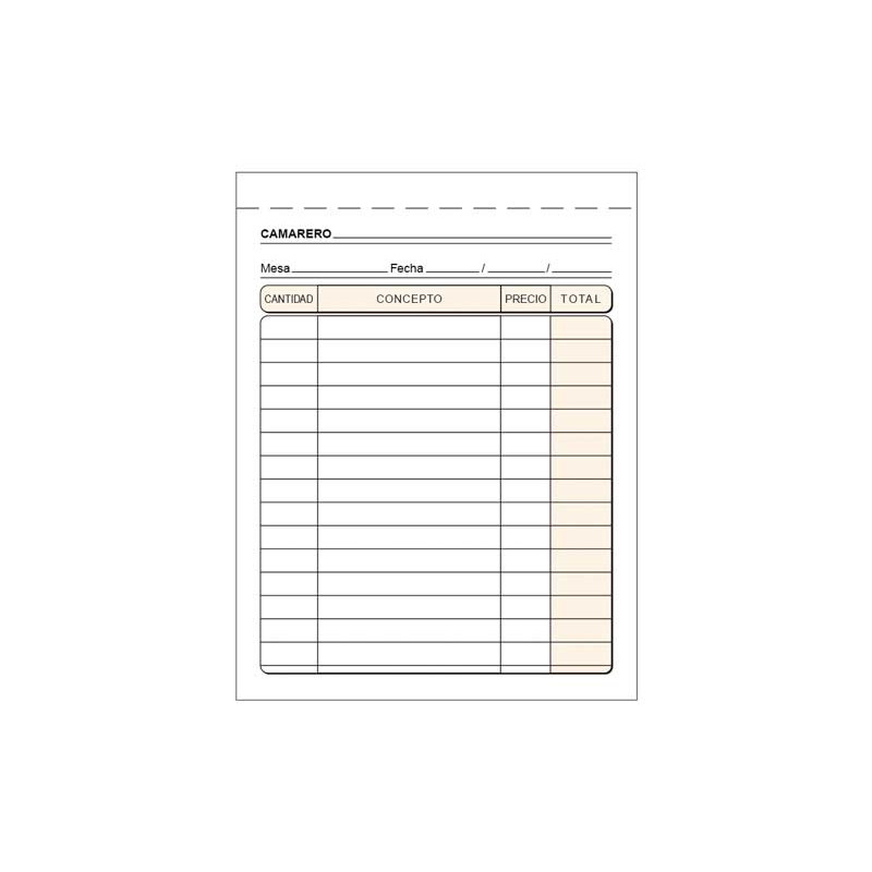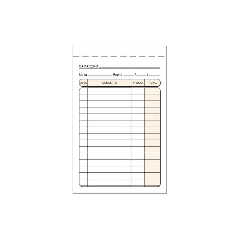 Talonario camarero Octavo natural Duplicado Blanco 50 juegos